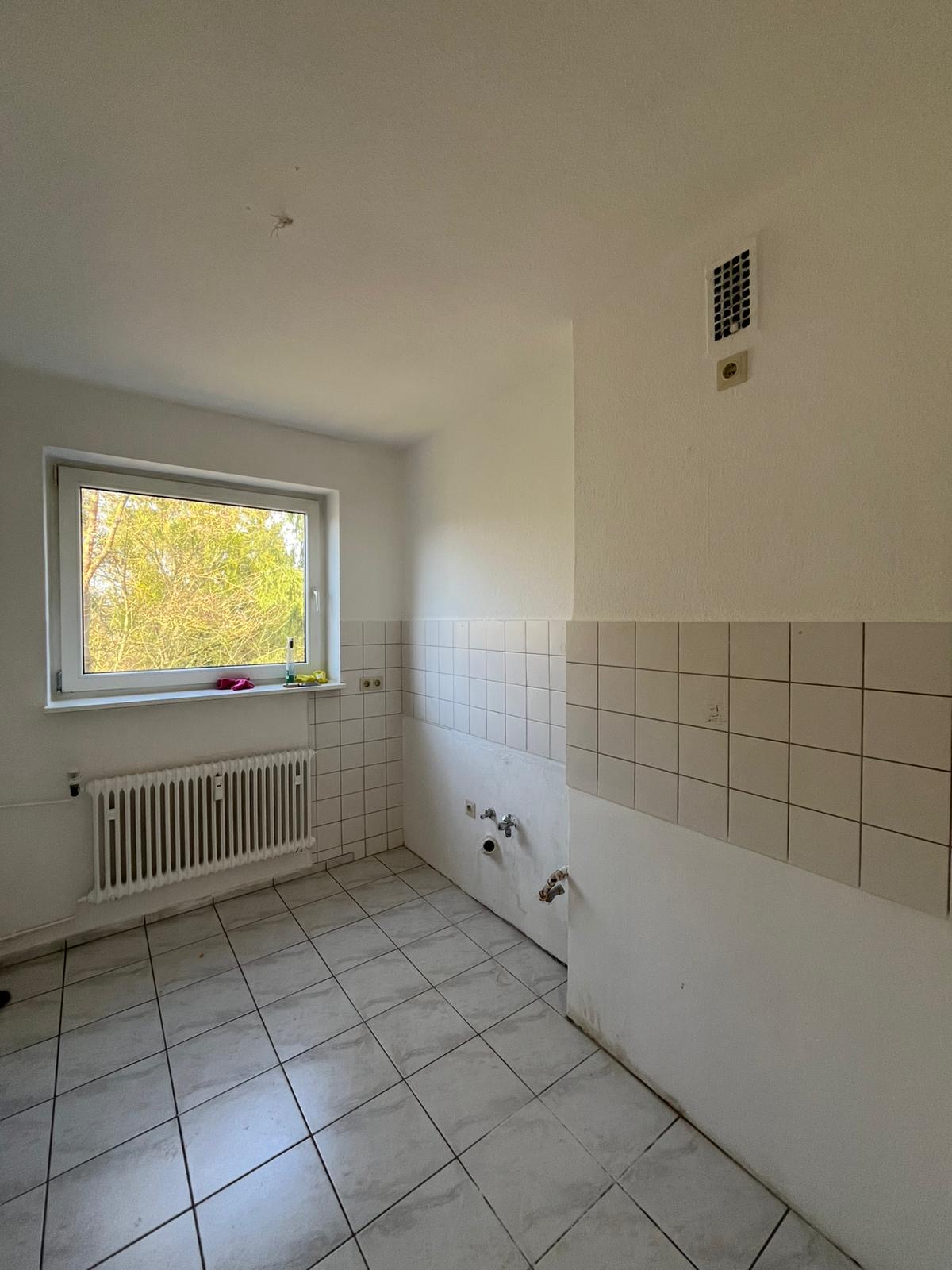Die Küche überzeugt durch einen praktischen Grundriss und ein großes Fenster, das den Raum mit Tageslicht versorgt und gleichzeitig für angenehme Belüftung sorgt. Anschlüsse für Ihre individuelle Küchengestaltung sind bereits vorhanden.