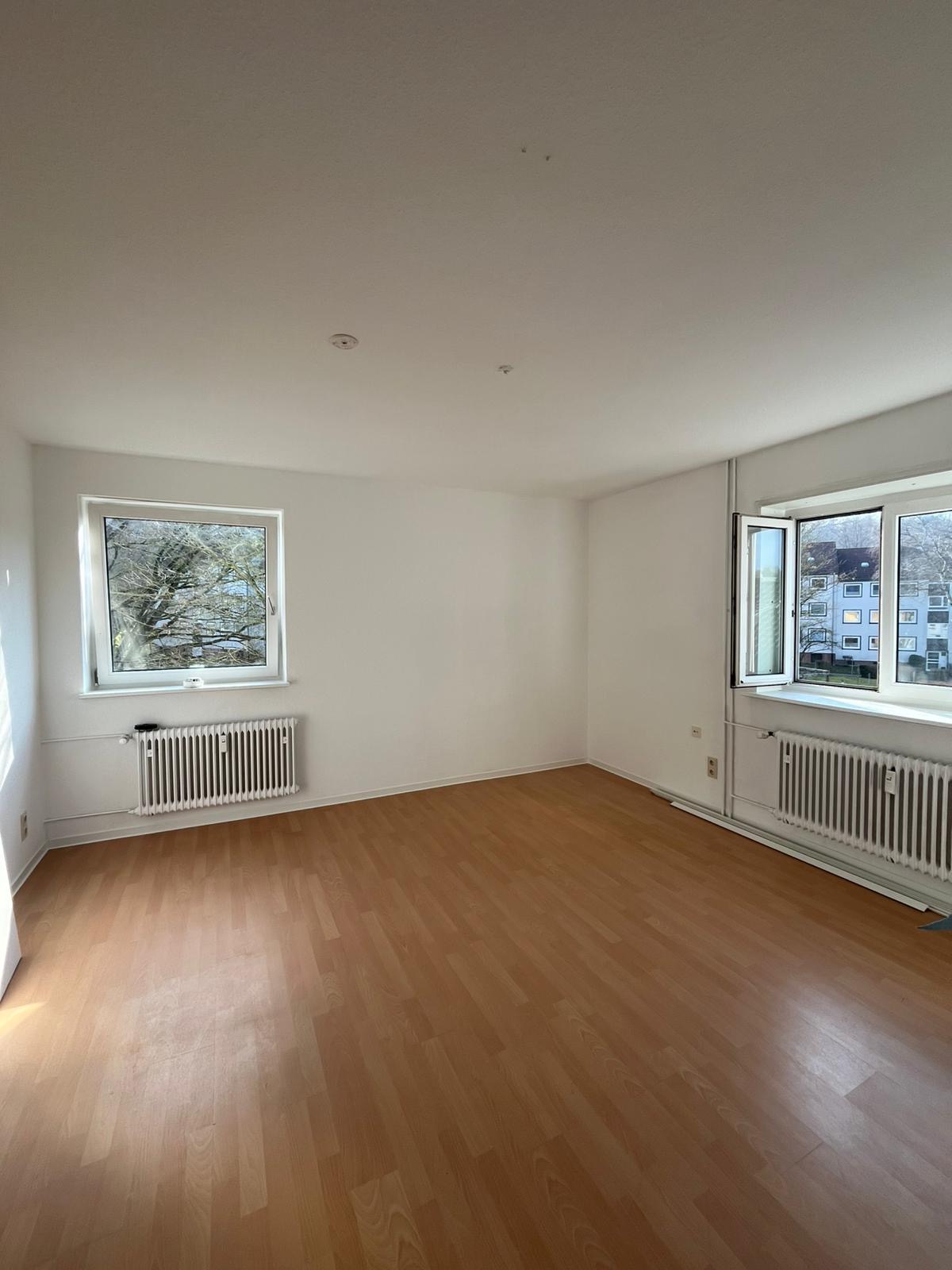 Der großzügige Wohnbereich bildet das Herzstück der Wohnung und bietet ausreichend Platz für eine gemütliche Sofalandschaft sowie einen Essbereich. Zwei Fenster sorgen für viel Tageslicht und schaffen eine freundliche, offene Wohnatmosphäre.