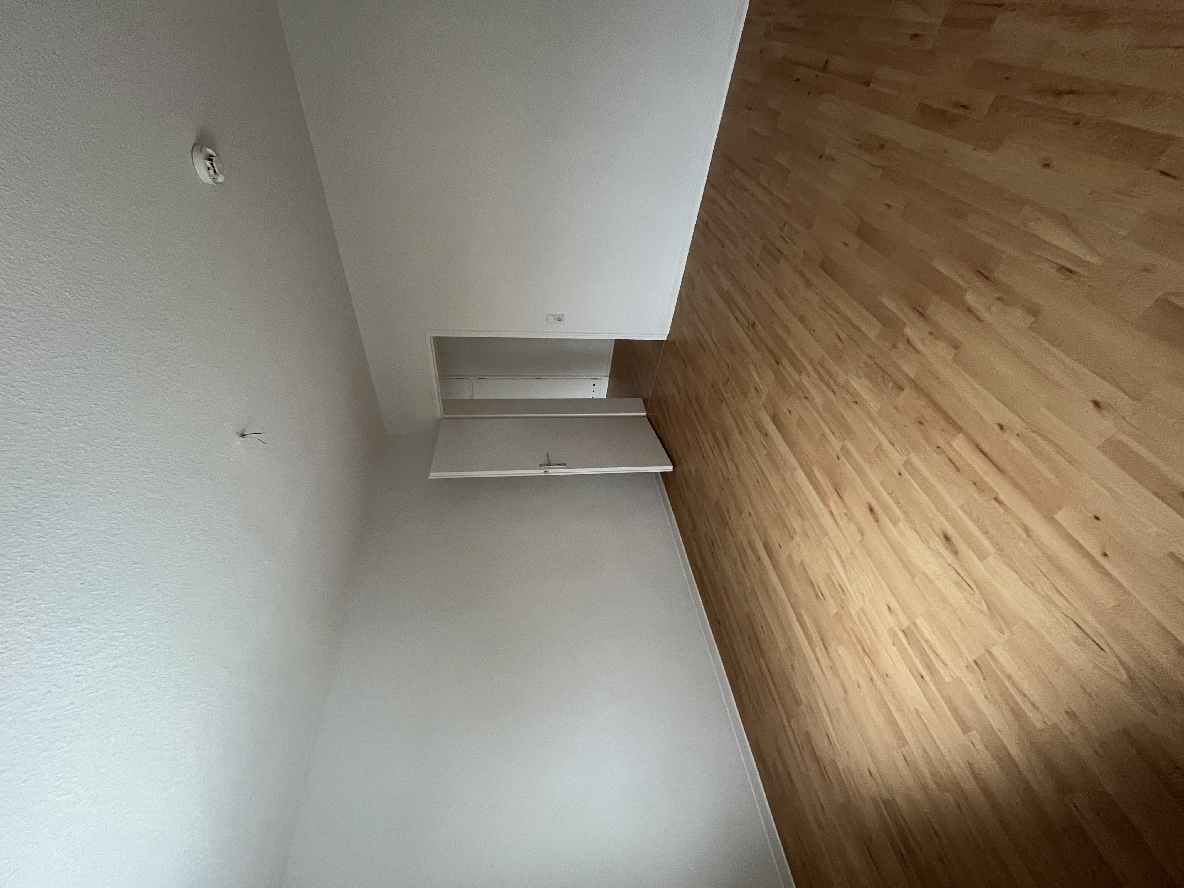 Der Flur empfängt Sie mit einem praktischen, integrierten Wandschrank, der wertvollen Stauraum bietet und für Ordnung sorgt. Herzstück der Wohnung ist das helle Wohnzimmer mit direktem Zugang zum Balkon. Hier genießen Sie entspannte Stunden, frische Luft und einen schönen Übergang zwischen Innen- und Außenbereich.