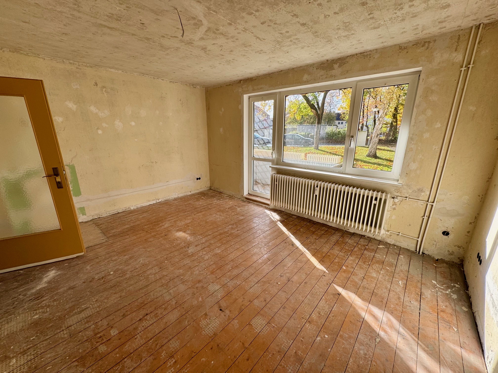 Das helle, lichtdurchflutete Wohnzimmer mit überdachtem Balkon bietet einen schönen Blick ins Grüne. Darüber hinaus verfügt die Wohnung über ein ruhiges Schlafzimmer, ein Kinder- bzw. Arbeitszimmer sowie ein Badezimmer mit Wanne oder Dusche (nach Wahl) und einem Waschmaschinenanschluss.
