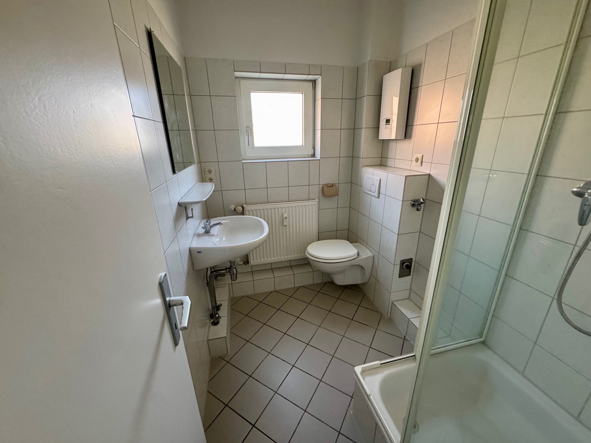 Neben einem lichtdurchfluteten Wohnzimmer und einem ruhig gelegenen Schlafzimmer verfügt die Wohnung über eine separate Küche sowie ein modernes Badezimmer mit Dusche und Waschmaschinenanschluss.