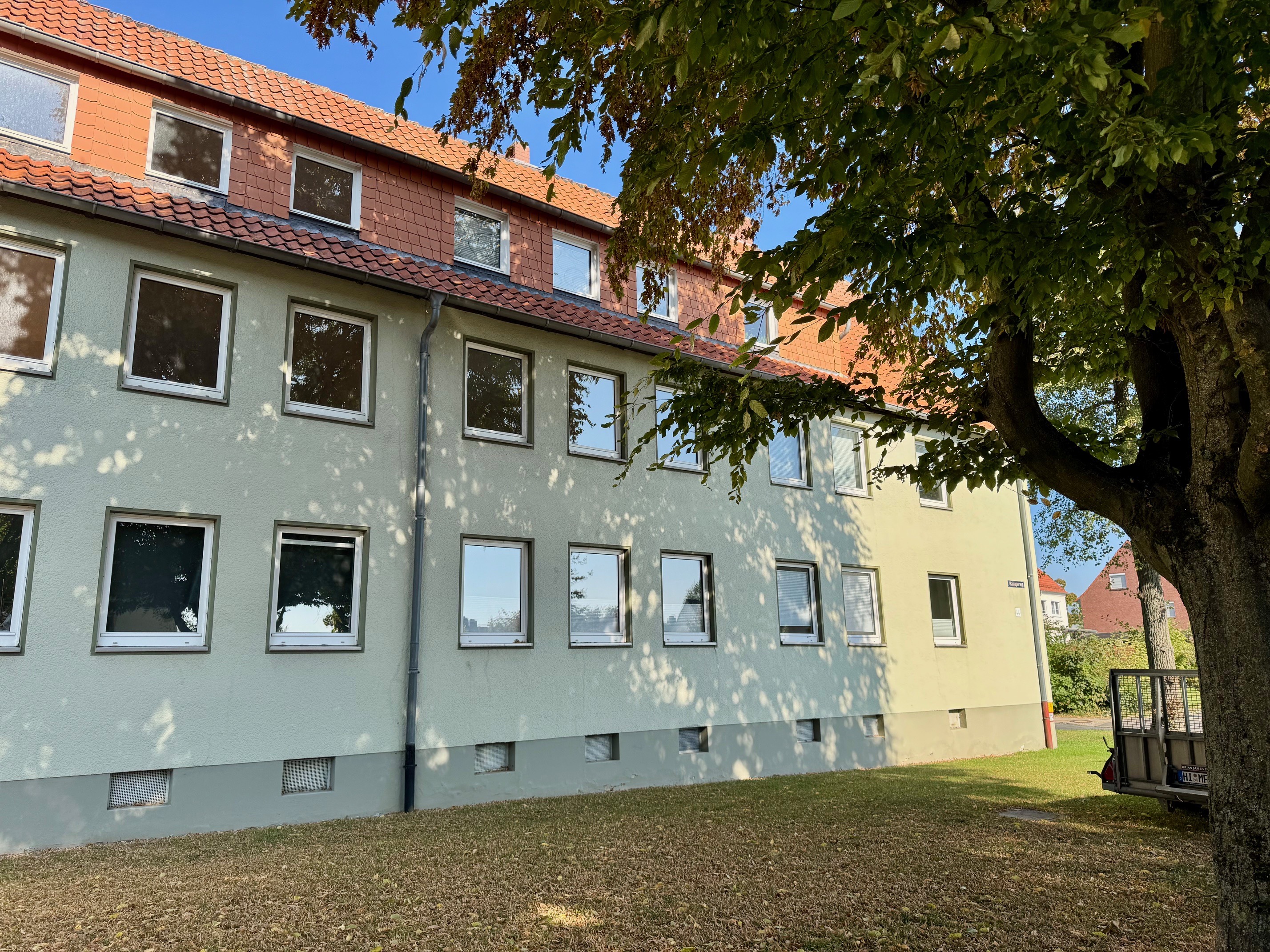 Die gemütliche Zwei-Zimmer-Wohnung befindet sich im 1. Obergeschoss des Hauses im Haßjägerweg 44 in Salzgitter-Gebhardshagen.