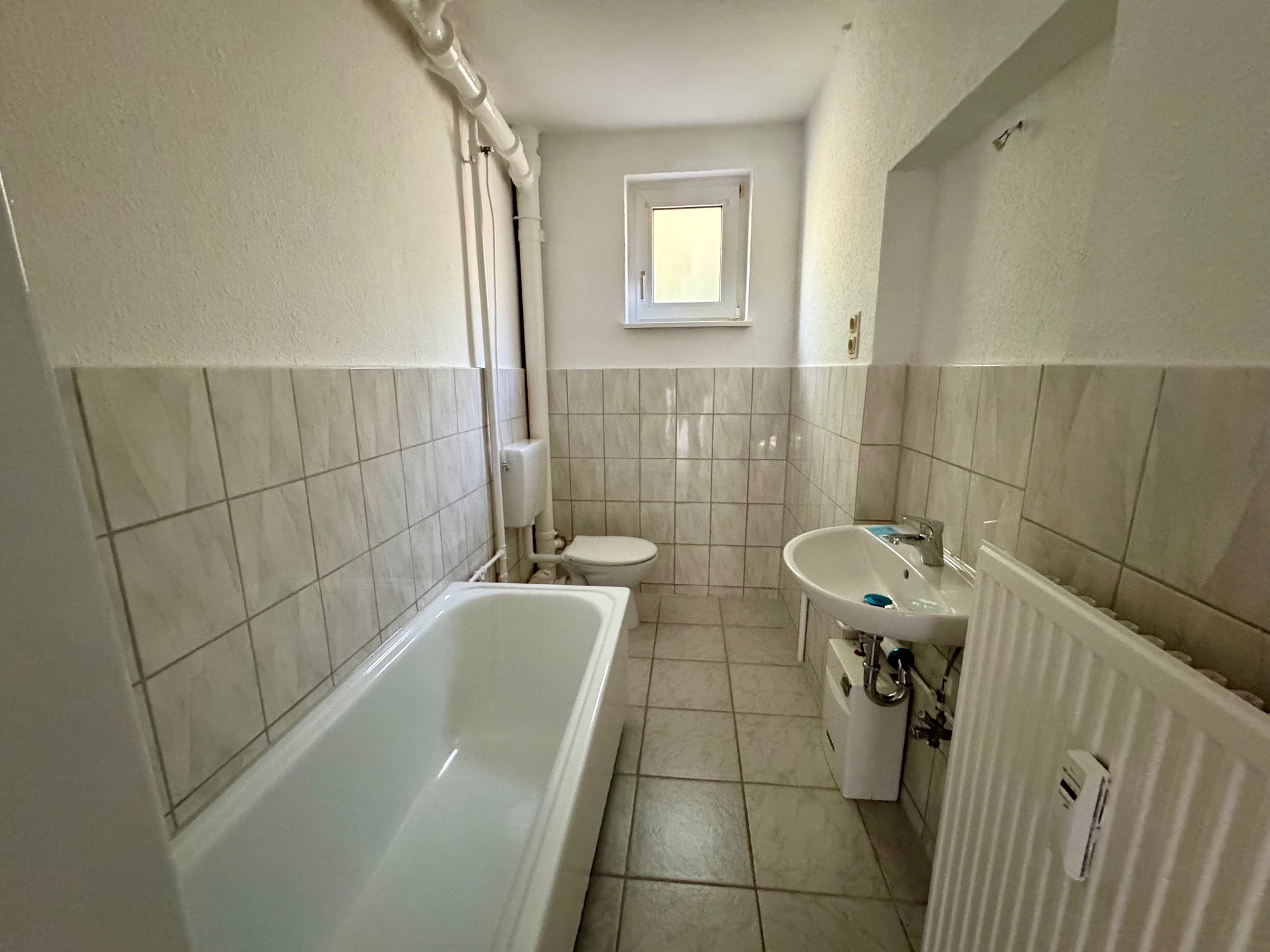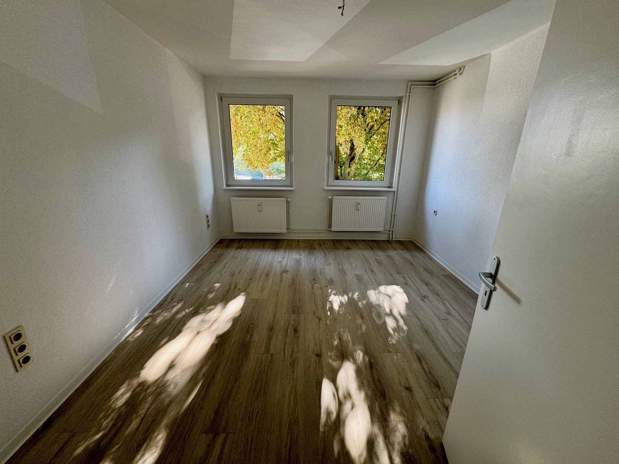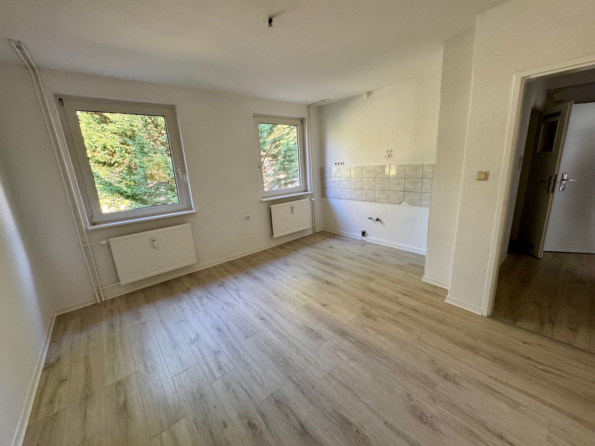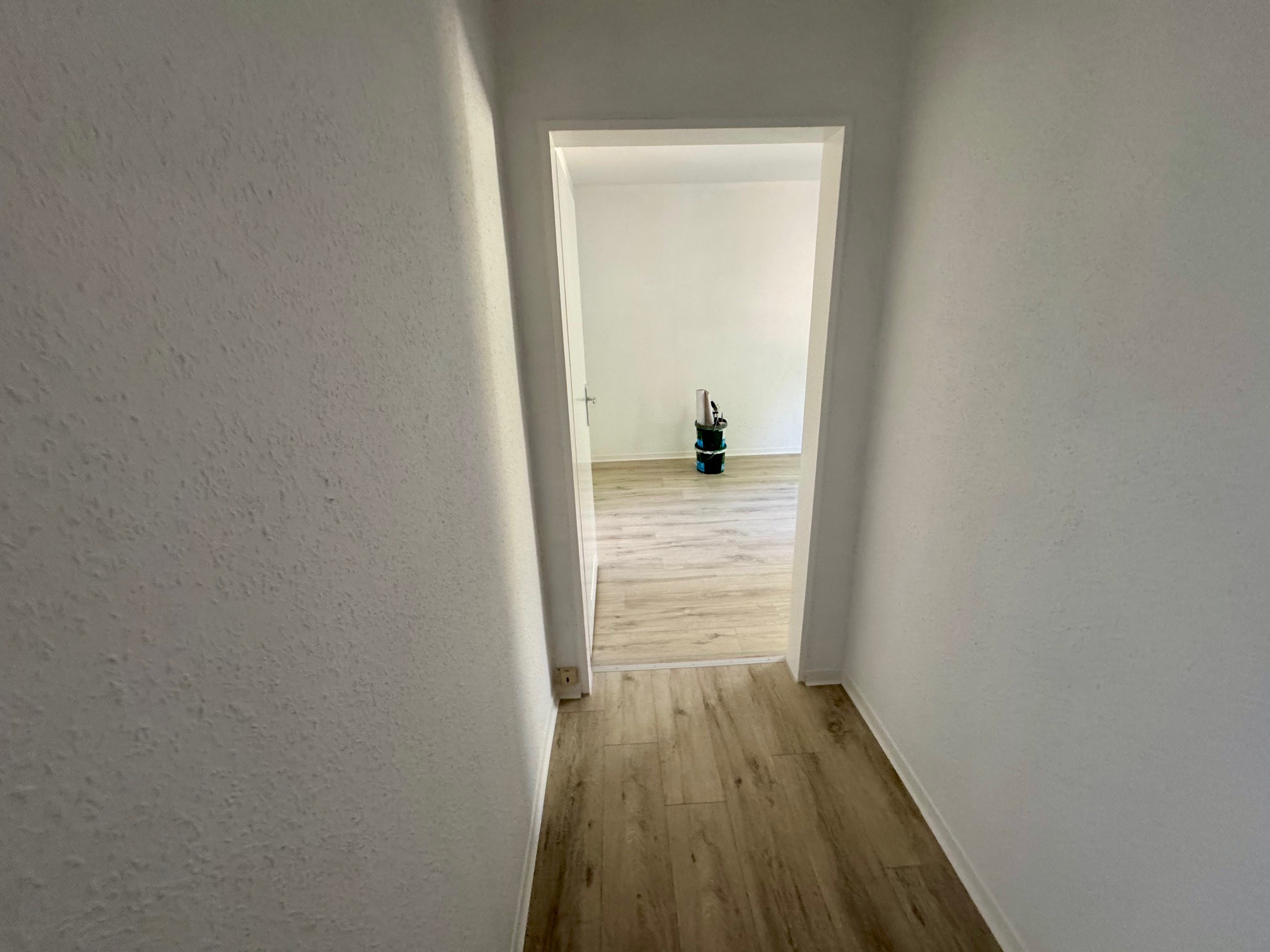 Die Wohnung wurde frisch renoviert: Wände und Decken sind neu tapeziert und gestrichen, außerdem wurde moderner Laminatboden verlegt. Auch das Badezimmer wurde teilweise mit neuen Elementen ausgestattet.