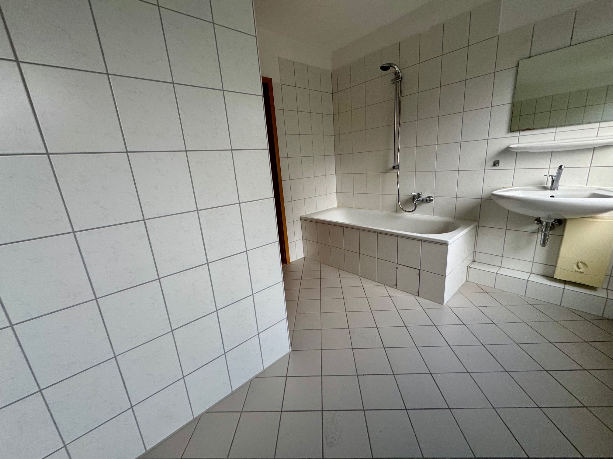 Besonders komfortabel ist das großzügige Badezimmer – ausgestattet mit Badewanne, wandhängendem WC und einem praktischen Waschmaschinenanschluss.